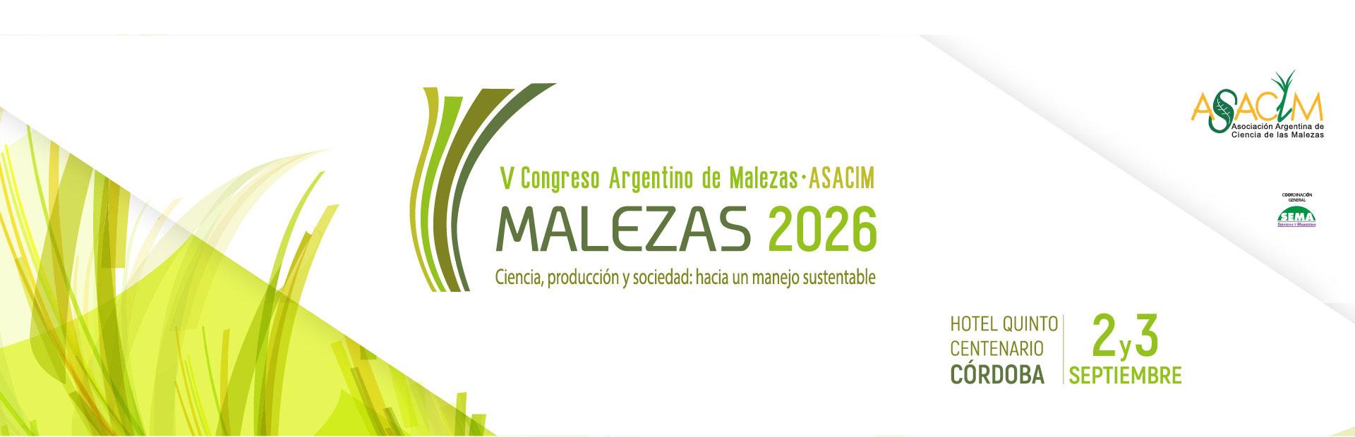 MALEZAS 2026, el V Congreso Argentino de Malezas de la ASACIM se plantea como un espacio académico anclado en el medio productivo, destinado a presentar y analizar todo aquello vinculado a los avances científicos y tecnológicos que contribuyan  a  enfrentar los nuevos problemas de los sistemas de la producción agropecuaria de la Argentina. Experiencias de reconocidos investigadores nacionales e internacionales se combinarán con las experiencias de asesores y productores que día a día enfrentan el desafío de manejar las malezas en vastas áreas del país.